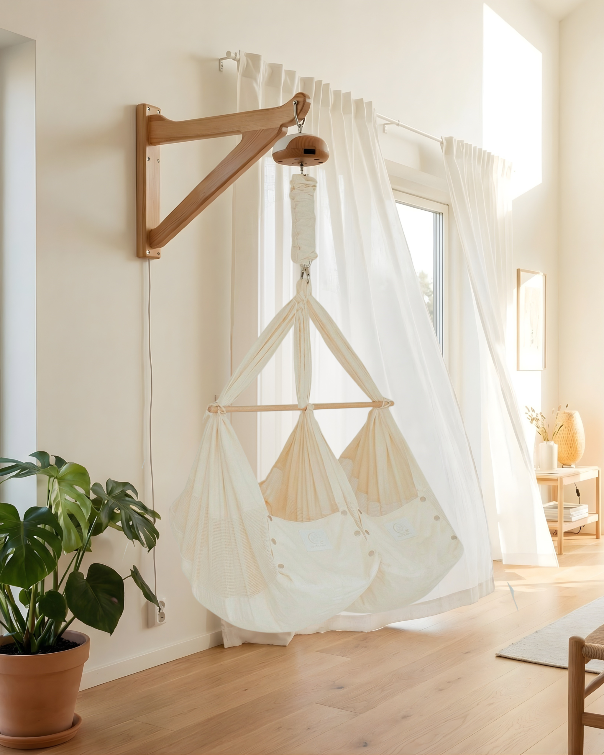Vuggen er fremstillet af økologiske materialer og leveres forseglet og klar til brug.